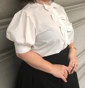 【ブラウス】リボン付きぽわん袖ブラウス